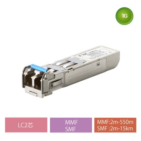【概要】 FXCの光モジュールは、QSFP28/QSFP+/SFP28/SFP+/SFPに対応するラインナップをご用意しております。 通信距離が最大120㎞に対応するモデルや動作温度が-40℃~+85℃と広範囲温度に対応するモデルもございます。 お客様のニーズに合わせて製品をご選択ください。 データセンター、キャンパス、企業ネットワークなど、様々な環境でご使用が可能です。 【主な機能】 ●2芯版 LCコネクタ MMF2m-550m(※)/SMF15km 兼用 ●規格:1000BASE-LX ●波長(nm):1310 ●許容損失(dB):10.5 ●動作時温度(℃):-40~+85 ※マルチモードファイバのグレードにより、伝送距離は異なります。