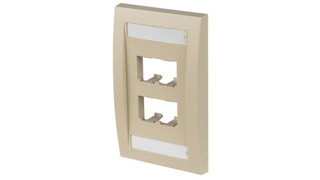 一般的なスイッチボックスに取付可能な83.5mmのネジ取付間隔です。パンドウイット社製モジュラージャックが直接取付可能です。表面が傾斜型になっています。