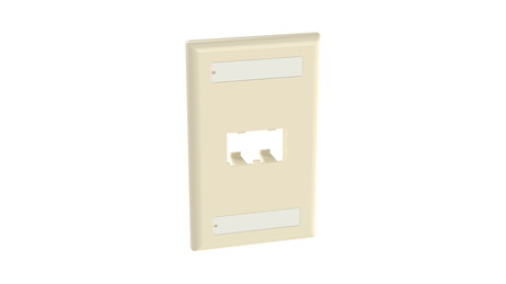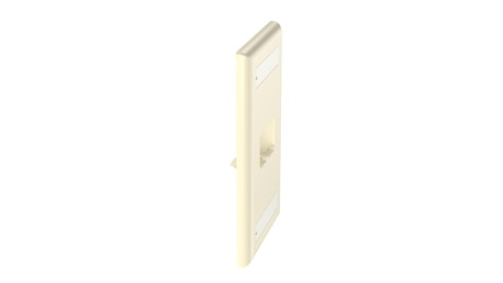 一般的なスイッチボックスに取付可能な83.5mmのネジ取付間隔です。パンドウイット社製モジュラージャックが直接取付可能です。ラベルとラベルホルダー付きです。