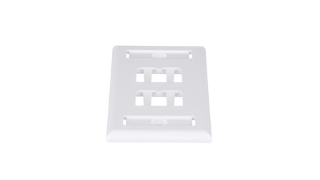 一般的なスイッチボックスに取付可能な83.5mmのネジ取付間隔です。パンドウイット社製モジュラージャックが直接取付可能です。ラベルとラベルホルダー付きです。