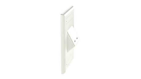 一般的なスイッチボックスに取付可能な83.5mmのネジ取付間隔です。パンドウイット社製モジュラージャックが直接取付可能です。ラベルとラベルホルダー付きです。