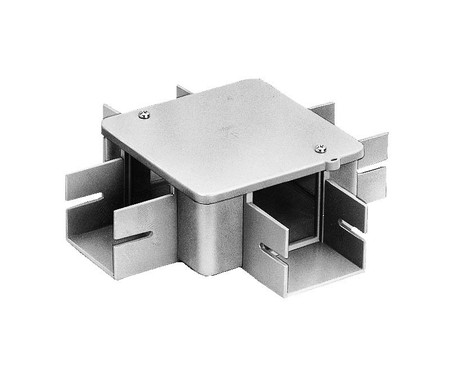 77型 ビス止めタイプ 4方出 プラスチックダクトに付属の連結金具をはめ、分岐ボックスにはめ込み、ネジ締め固定します。