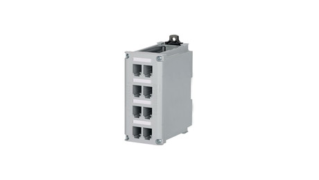 DIN規格(35mm幅)のレールに取り付け可能な8ポートパッチパネルです。パンドウイット社製の全てのMini-Comジャックを取り付け可能です。