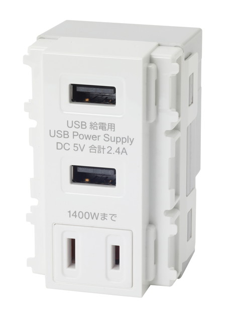 埋込USB+AC給電コンセント(Type-Aタイプ2口+ACコンセント)(ホワイト)