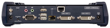 KE6940AはDVI-Iデュアルディスプレイに対応しており、ロスや遅延がほとんど無い状態で、最大1920×1200@60Hzのビデオ伝送を可能にします。 本製品は、PCを接続するトランスミッター(KE6940AT)とコンソールを接続するレシーバー(ユーザーステーション:KE6940AR)から構成され、USB コンソール(USB キーボード、USB マウス、DVI モニター)を介してイントラネット経由でコンピューターにリモートアクセスできるため、ユーザーはコンピューターシステムを安全で温度管理された環境に設置することができます。 KE6940A は、RJ-45 ポートまたはSFP スロットを介した接続に対応します。トランスミッターとレシーバーは、互いに直接接続することも、銅線ベースまたはファイバーベースのLAN を介し高速ネットワークを経由して接続することもできます。SFPスロットを介して接続する場合、本製品は1Gbps SFPファイバーモジュール※1 拡張に対応しているため、光ファイバーネットワーク経由で接続した場合、最大10km延長することが可能です。 また、KE6940A には、信頼性の高いサービスを提供するために冗長化を実現するデュアル電源が搭載されています。 各ユニットには固有のIPアドレスが割り当てられるので、1対1、1対多、多対1での通信が可能です。さらに、KEマトリックス管理ソフトウェア(CCKM)※2 と併用した場合は多対多の通信ができ、異なる作業環境でより柔軟なアプリケーションを提供します。