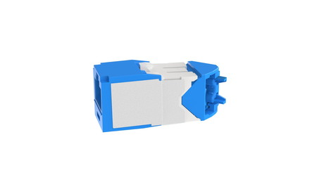 左右45度の角度でケーブルエントリーが可能。奥行きが無いスペースに最適。モジュラーパッチパネルやフェースプレートに最適。AWG22~26の単線及び撚り線ケーブルを成端可能。