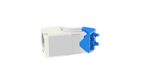 左右45度の角度でケーブルエントリーが可能。奥行きが無いスペースに最適。モジュラーパッチパネルやフェースプレートに最適。AWG22~26の単線及び撚り線ケーブルを成端可能。