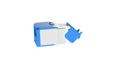 上下45度の角度でケーブルエントリーが可能。奥行きが無いスペースに最適。モジュラーパッチパネルやフェースプレートに最適。AWG22~26の単線及び撚り線ケーブルを成端可能。