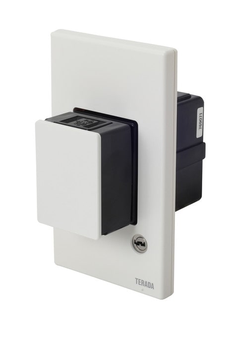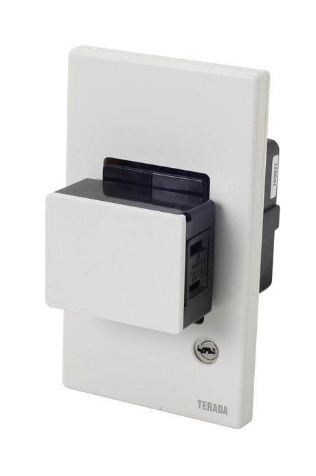 アルミ壁用プッシュコンセント アース無し/カギ付き(ホワイト)