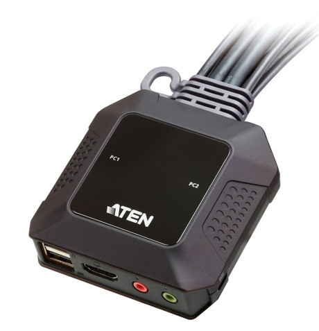 ATENケーブルKVMスイッチCS22Hは、USB&HDMIコンソールを備えた2台のコンピューターに即座にアクセスできる環境を構築することでユーザーに最大の利便性をもたらすと同時に、4K DCI(4096×2160@60Hz)の高品質映像に対応することにより最適なビジュアルを提供します。 ユーザーがコンピューターを切り替えたいときは、製品本体に一体化したワイヤードリモコンを押すだけで直感的な操作が楽しめます。 また、CS22HはUSB2.0ハブとして周辺機器の共有に対応しているため、データを容易に統合し、データ伝送を中断することなく確実に行うことができます。 コンパクトでバスパワー対応の設計により、ケーブルのセットアップを大掛かりに行うことなく効率的な設置作業が可能になります。 また、新たに設計されたフックにより、ユーザーはCS22Hの製品本体をデスクトップの整理に最適な場所へと配置することができます。 このプラグアンドプレイ対応のCS22Hは、どのような環境でも、デスクトップ上の2台のコンピューター間でマルチタスクを素早く制御する必要があるユーザーに最適な製品です。