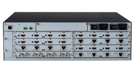 解像度4K@60、HDCP 2.2に対応した最大16入力16出力のモジュラー型マトリクススイッチャ