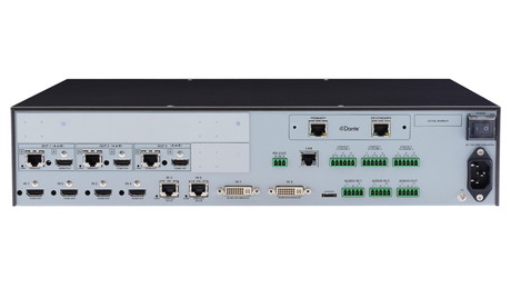 8入力3出力のスキャンコンバーター内蔵デジタルマルチスイッチャー(Dante出力モデル)