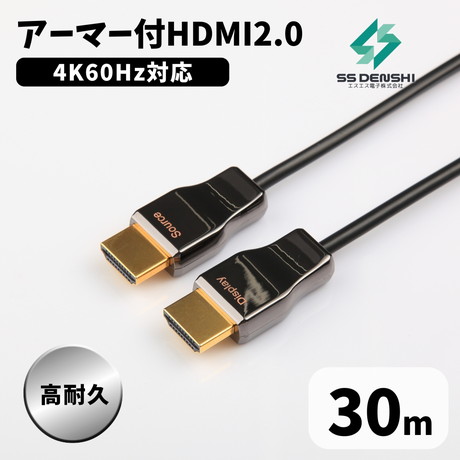 Premium HDMI(Ver.2.0) AOC。光ファイバーと銅線のハイブリッドケーブル。最大4K/60Hz解像度対応。