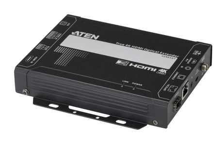 VE883Aは、非圧縮4K HDMI信号をシングルモードまたはマルチモードの光ファイバーケーブル1本で長距離転送できるHDMIエクステンダーです。