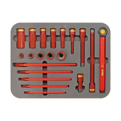 短絡防止絶縁工具【セット内容】絶縁ソケット(差込角12.7㎜)10・13・17・19・24mm・絶縁ディープソケット(差込角12.7㎜)10・13・17・19・24mm・絶縁片口スパナ(グリップ付き) 10・13・17・19・24mm・絶縁片口曲柄メガネレンチ(グリップ付き) 10・13・17・19・24mm・絶縁首振りラチェットレンチ 13・17・19mm・絶縁プラスドライバー+2×150・絶縁マイナスドライバーー6×150・絶縁平刃ニッパー・絶縁ヘキサビットソケット 408・絶縁エクステンションバー(差込角12.7㎜)75.5・150.5・250.5mm・絶縁ラチェットハンドル4分 角 (RH-4ZRF)・専用収納ケース