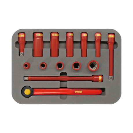 短絡防止絶縁工具【セット内容】本体絶縁ハンドル差し込み角912.7mm(1/2″)72歯・絶縁ソケット12角[10・13・17・19・24mm]・ディープソケット6角[10・13・17・19・24mm]・絶縁エックステンションバー75.5mm・絶縁エックステンションバー150.5mm・絶縁エックステンションバー250.5mm・キャリングケース新機構ラチェット 新採用コーティング保護樹脂ラチェットヘッド 本体ハンドル部もフッ素樹脂で絶縁