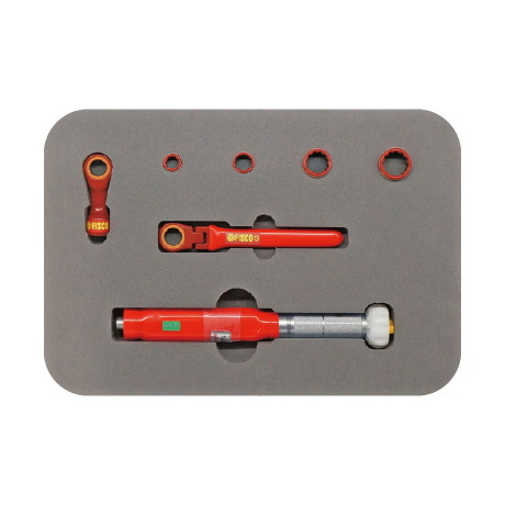 短絡防止絶縁工具【セット内容】絶縁トルクレンチ本体絶縁メガネラチェットヘッド313(72歯ワンタッチ5°)絶縁マルチソケット(6角)(差し込み角13㎜六角)10・13・17・19mm絶縁首振りメガネラチェット13、収納ケース最大長:295mm(ラチェットヘッド装着時)