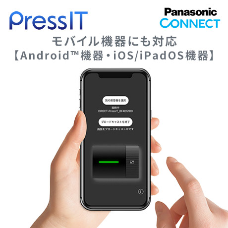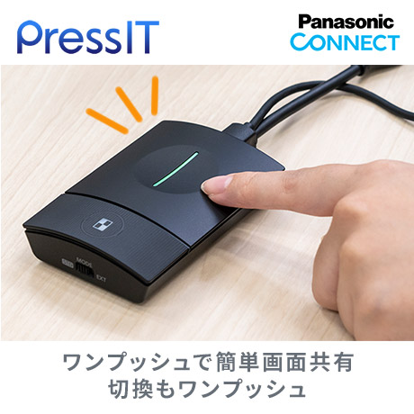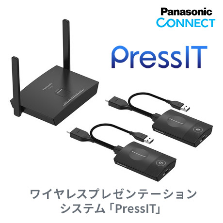 ワイヤレスプレゼンテーションシステムPressITは、パソコン・タブレット・スマートフォンの画面を簡単にワイヤレスでディスプレイやプロジェクターに表示できるワイヤレスプレゼンテーションシステムです。