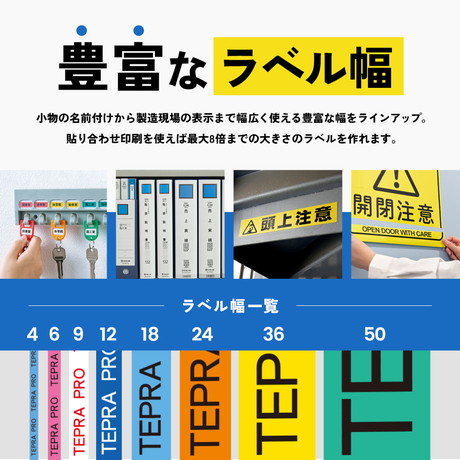 高度な技術と強力な印刷を表現!PRO印刷方式。「テプラ」PROシリーズ専用テープカートリッジ。