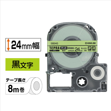 「テプラ」PROテ-プ マットラベル 若葉色/黒文字 24mm幅