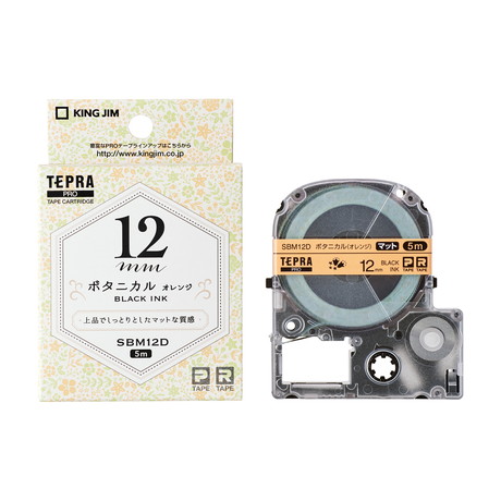 商品名 「テプラ」PROテ-プ マットラベル(模様)オレンジ・ボタニカル/黒文字 12mm幅