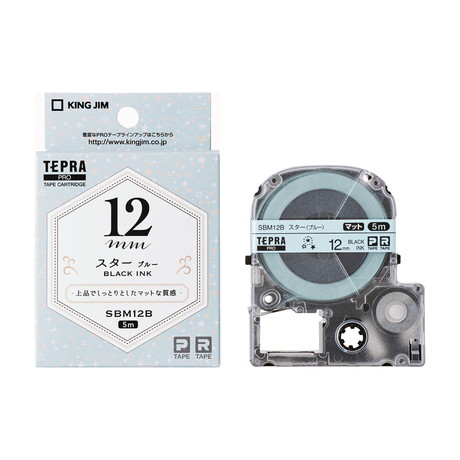 商品名 「テプラ」PROテ-プ マットラベル(模様)ブルー・スター/黒文字 12mm幅