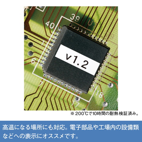 商品名 「テプラ」PROテ-プ 耐熱ラベル 白/黒文字 12mm幅
