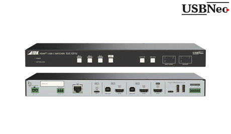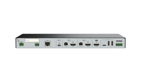 映像入力は、USB-C が1系統、HDMI が2系統あり、いずれかをHDMIに出力します。USB-C入力は、USB-Cコネクターの外部ディスプレー接続に対応したノートPC等から映像信号を入力できます。また、USB Power Deliveryにも対応しており、USB-Cソース機器に最大75Wの電源供給が可能です。USBは、ホストが3系統、デバイスが3系統あり、ホスト切り換え、USBハブ機能を搭載しています。