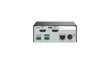 HDMI出力にはダウンコンバート機能を搭載しています。入力映像フォーマットが4Kのとき、シンク機器の受信可能な解像度を判別して自動的に1080pに変換出力することが可能です。音声は、デジタル音声をアナログ音声に変換して出力することができます。また、アナログ音声をデジタル音声に変換し、HDMI信号へ入力することができます。