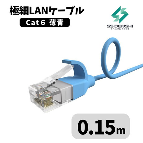 CAT6 細径 パッチコード UTP 0.15m 薄青 34AWG OD2.6 撚線