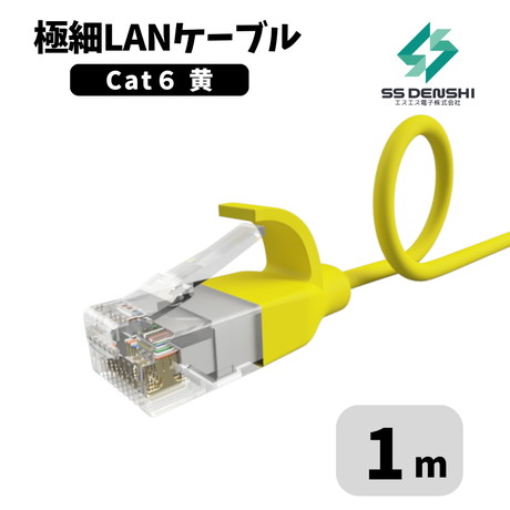 CAT6 細径 パッチコード UTP 1m 黄色 34AWG OD2.6 撚線