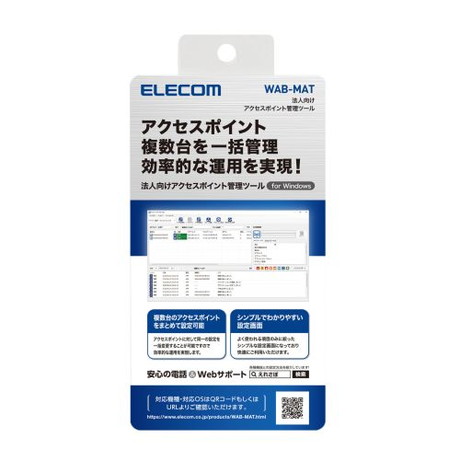 法人向けアクセスポイントの管理ツールです。アクセスポイント最大3000台(動作理論値)を一括管理することができます。また、セグメント越えでの監視や設定が可能です。管理ツールがSYSログサーバーとなりログを受信することで、ログ管理を行うことができます。(30日間無償トライアル付き) また、初期導入時に便利な「アクセスポイント検索ツール WAB-MAT Lite」を無償で提供。初期設定時に複数のアクセスポイントを検索し、リストで表示。かんたんに管理画面へアクセスすることが可能です。初期導入時の「時間短縮」・「作業負荷軽減」に貢献します。