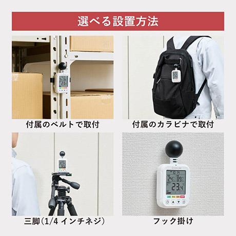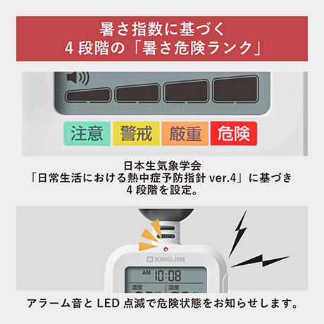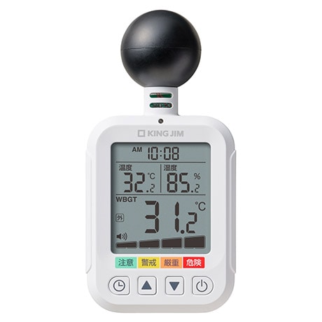 【ご使用上の注意】本製品は医療機器ではありません。暑さ指数の表示値は、環境の暑さ危険度の目安であり、安全を保証するものではありません。体調が悪くなった場合には、本製品の表示にかかわらず、医師の診察を受けるなどの適切な処置をしてください。本製品は防水・防塵仕様ではありません。日本国内専用です。