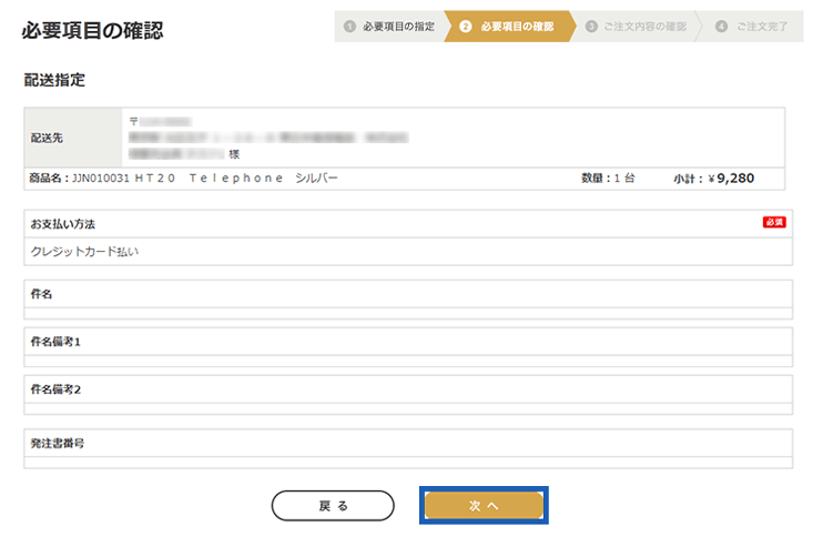 最終のご注文内容確認画面で、ご注文商品名・数量・配送先などに誤りがないか、今一度ご確認ください。
